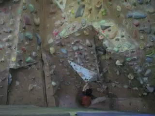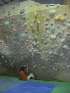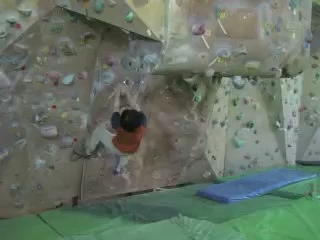 10時に集合してルールの説明の後にまずは予選。ただし予選といってもこれは全員が通過できることになっており、フラッシング方式で左壁の6級程度の課題を登り準決勝での順番を決めます。朝一番、ウォームアップなしで身体の固さを感じながら完登したものの、タイムで4番目となりました。