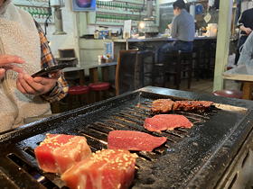 今は流氷シーズン真っ只中(実際に接岸したのは昨日ですが)ということでノダ氏が宿をとってくれたのは網走から車で1時間ほどの北見市です。北見といえば焼肉、焼肉といえば北見というくらい焼肉文化が盛んで、市内には70軒以上の焼肉店があり、人口1万人当たり約7軒という数字は道内の市の中で最多だそうです。それならというわけでホテルからほど近いところにある焼肉店を適当に見繕って訪問し、まずは久々の再会を祝して乾杯しつつ焼肉に舌鼓を打ちました。