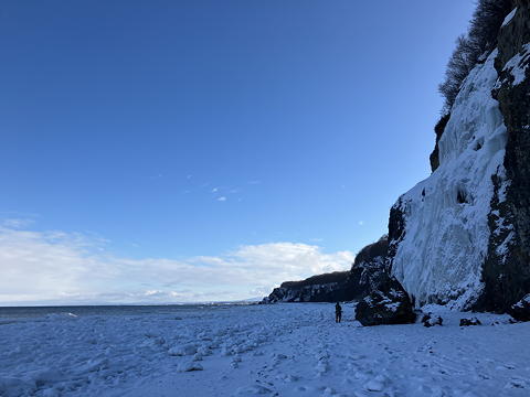 北海道在住・ノダ氏のアテンドを得てのアイスクライミングはここ数年の恒例ですが、これまでは層雲峡だったのに対し今年は能取岬を訪れることにしました。能取岬の氷瀑群は2018年にガイドツアーで登ったことがあり、そのときの印象がよかったので離道するときには次は仲間と共に訪れて片端からリードして回りたい