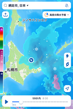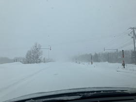 すこぶる過ごしやすくお値段もリーズナブルだったホテルをチェックアウトして、外に出ると雪。網走に向かう車の中で天気予報を確認すると「網走を中心に強い雪」などと言っています。