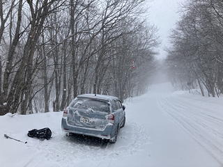 ホテルの朝食を6時半からとって、北見市から網走市に移動しコンビニエンスストアで行動食を調達してから現地へ向かいました。これなら一番乗りだろうと思っていたのですがそれは甘く、すでに先客1台が駐車していました。