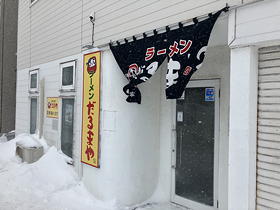 能取岬の氷瀑群を離れた時点で時刻はまだ10時半頃。初日に生じたアクシデントのためにノダ氏には早く帰宅してもらいたいところですが、帰りの飛行機が19時10分のフライトなので今から空港に私を残置するのは気の毒だと考えたノダ氏は、昼すぎまでは私につきあってくれることになりました。そこで私のリクエストで網走市立郷土博物館に向かいましたが、ぐんぐん道に積もっていく雪のために博物館に通じる斜道で車がスタックしかけるアクシデントに見舞われてしまいます。それでもどうにか窮地を脱して博物館に辿り着くことができ、ここで網走の歴史を幅広く学んでから、博物館からほど近い場所にある「ラーメンだるまや」で「どろラーメン」を食しました。