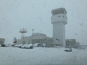昼食を終えて、女満別空港へ送ってもらう道すがらも風雪は収まる様子はありません。実際にもこの日1便が欠航になってしまいましたが、私が搭乗するエアドゥ機は滑走路の除雪のおかげでわずか35分遅れで飛び立ってくれました。