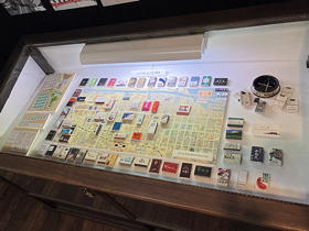 1階の右の部屋の奥の部屋では「昭和時代後半の網走展」という特別企画展が実施されており、高度成長期(昭和40〜44年)→経済不況期(昭和45〜54年)→バブル前夜期(昭和55〜64年)の世相の移り変わりとその中での網走の街並みの変化がわかりやすく示されていました。世相面では各種家庭用品や電子機器、玩具、雑誌、映画のポスターなども並んでいてノダ氏も私も懐かしさを覚えましたが、面白かったのは日本国有鉄道の昭和39年の路線図で、そこにはノダ氏が住んでいる浜頓別にかつて通っていた天北線や興浜北線がはっきり描かれていました。