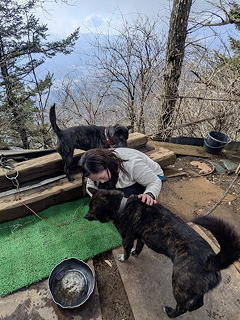 相模太郎氏とヒミカさんはひと足先にこの山荘まで上がっていてここで合流しましたが、我々が着くまでの間、いつも登山者を見ると大声で「お前は誰だ、どこへ行くのだ」と誰何する黒犬に念入りに挨拶をしていたそうです。
