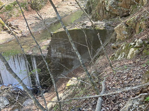 ▲問題の堰堤。左(右岸)は絶望的なので右(左岸)を見るが……。