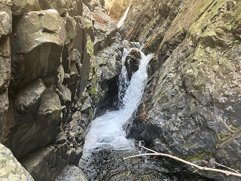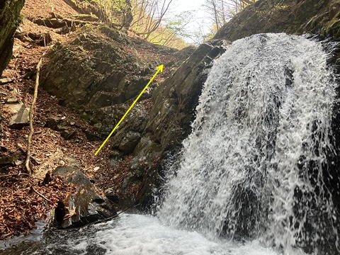 ▲ゴルジュ出口の滝。右から回り込んで落ち口近くを登った。