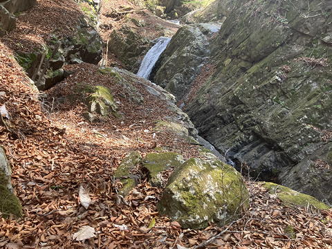 ▲左岸から6m滝で合わさる顕著な支流を見送る。