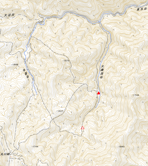 ▲赤い「▲」が幕営地。「△」にも幕営適地あり。