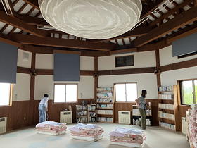 ドンデン高原ロッジに戻るとすでに黄色味を帯びた太陽が雲の上に浮かんでおり、その光を受けて海面や両津市街の建物が輝いているさまも見応えがありました。しかしボリュームのありそうな雲が強風の中をものすごい勢いで右から左へと流れており、こうした眺めは長続きしそうにありません。我々はいったんロッジ内に戻り、朝食をとってからプラネタリウム室に戻って風が収まるのを待ったのですが、それにしても気になるのはこの日開催されている「佐渡ロングライド210」のことです。佐渡島の外周をぐるっと一周210km走破するこのサイクルイベントに参加するサイクリストの姿は昨日のフェリーでも少なからず見かけたのですが、出発時刻=5時半の時点では一向に風が収まる様子がなく、これで走れるのかな?と下界を見下ろしながらやきもきしてしまいました。