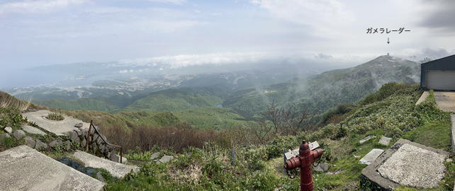 この時期のお日様は東北東の方角から昇るので日本海の彼方にそびえている鳥海山のシルエットの右側から上がるはずですが、あいにくそのあたりは雲に覆われていたため御来光を仰ぐことはできませんでした。それでもそちらの空がオレンジや黄色のグラデーションに染まるさまは美しく、早起きをしてここまで登ってきた価値は十分にあったと言えそうです。