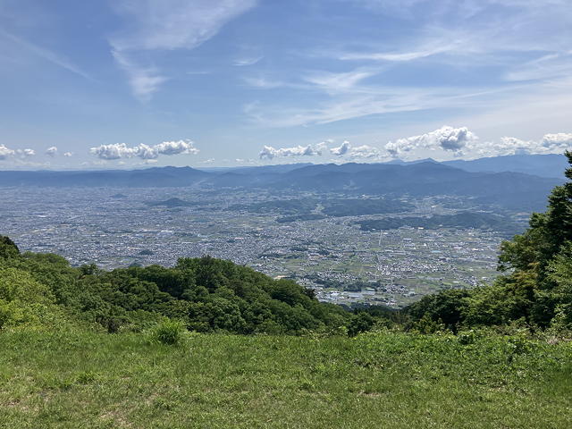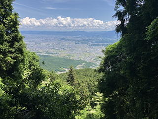 やがてダイトレの道はカヤンボと呼ばれる地点から左の尾根に取り付き、尾根上に出たところにある旧パノラマ台に向かいます。ひとがんばりで登り着いた旧パノラマ台はなぜ「旧」なのか不明ですが、ここからも奈良盆地がよく見えました。