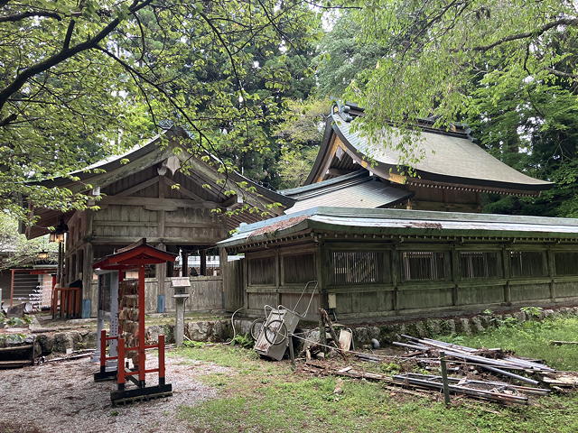 葛木神社は拝殿脇にある「葛木神社由緒」によれば崇神天皇の御代に事代主を祭神として創建され、現在は主祭神が葛木一言主大神、副祭神は大楠公(楠木正成)と後醍醐天皇。大社造の社殿が特徴的です。