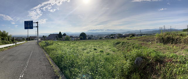 御所駅から大和葛城山へはバス路線が通じていますが、この時間帯はまだ動いておらず、緩やかな登り坂の道をひたすら歩きます。いや、緩やかと言ってもずいぶんな標高差を登らされているような気がするなぁと思いながら途中でふと振り返ると、朝の斜光の中でうっすらと靄に蓋をされた奈良盆地南部が幻想的な景観を作っていました。