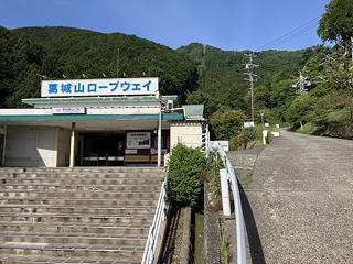 転法輪寺を出て休憩所でおでん休憩をとり、さらに何やら工事中の国見城跡でなかば霞んだ大阪方面の眺めを確認したら下山開始です。あとはひたすら階段が続く千早本道を下り、楠木正成が北条方の大軍を引き受けて一歩も引かなかったという故事で有名な千早城跡(千早神社)を通り抜けて、金剛登山口を目指しました。