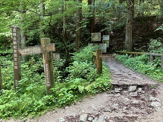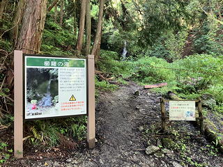 櫛羅の滝はかつて弘法大師がここにやってきて、天竺のクジラの滝に似ているのでそのように命名したという伝承があり、この滝に浴するものは不動明王の功徳によって脳病によく効くと伝えられているそうですが、あいにく滝の手前に危険防止のためのロープが張られていて近づくことができません。またそこからしばらく登ったところには二の滝(不動の滝)への分岐があるのですが、こちらも通行止めとされていて滝を拝むことすらできませんでした。