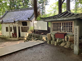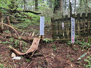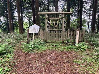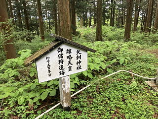 拝殿で無事縦走達成の御礼を申し上げてから右側に回り込むと13基の末社が並び、その奥に裏参道に続く道と金剛山最高地点に通じる道が分かれていましたが、本殿の裏にあたる最高地点は神域とされていて立入り禁止でした。まぁ、こればかりは仕方ありません。しからばと葛木神社の前にある小さな矢刺神社にも足を伸ばしました。こちらは「雄略天皇御狩の跡」で、狩りのためにこの山に登った雄略天皇が一言主神と出会ったところだとされています。