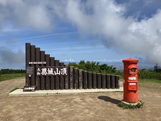 葛城天神社から少し歩くと明るい草地が右上に広がっているのが見えて、そこが大和葛城山の山頂でした。明るい広場になっている山頂にはなぜか旧式のポストが立っていて登山者の脳内を「?」マークで埋め尽くしてしまいますが、気を取り直して周囲を見回すとその景観のすばらしさに驚きます。