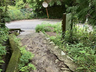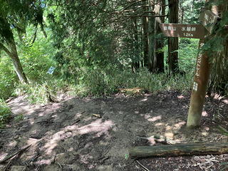 葛城山ロープウェイの登山口駅の少し先でイノシシ除けのゲートを通過すると山道になり、すぐに北尾根コースへの分岐が現れます。そちらを登ってもいいのですが、もう一つの櫛羅くじらの滝コースの方が短時間で山頂に到達できるので、そのまま分岐を見送って櫛羅の滝を目指しました。