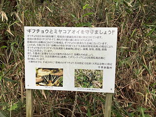 この縦走路には「ダイヤモンドトレール」(通称「ダイトレ」)という名前がつけられていて、それはおそらくダイヤモンドの和名が金剛石だからだろうと思いますが、その途上の数箇所に絶滅危惧種ギフチョウの保護を呼び掛ける案内板が設置されていました。もしかして、昨日見かけたアレもギフチョウだったのかな?
