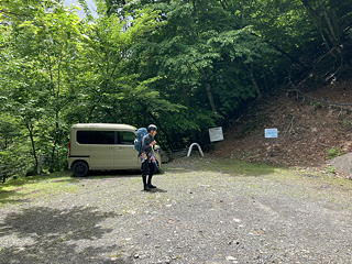元来日帰りで遡行できる沢をあえて泊つきとしているので正午出発とし、そのためkusutto氏とは高尾山口駅前で10時合流という超のんびりプランです。しかし、そこから小菅村へは山越えのくねくね道を飛ばすことになり、出発点となる林道小菅線の終点に着いたときには私は車酔いでなかばふらふらの状態でした。