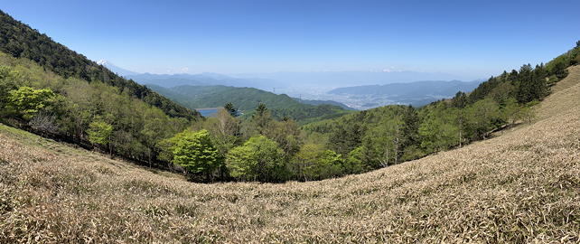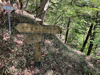 大菩薩峠から起点(林道小菅線終点)への下りは、ニワタシバ(荷渡し場)やフルコンバ(古木場?)といった特徴的な地名[2]を点在させ、緩やかな下り勾配が歩きやすい上に広葉樹の緑が明るく、とても楽しい道でした。おかげで2時間もかからずに車に戻ることができた我々は、「小菅の湯」での入浴と昼食の後に、再びくねくね道を越えて帰路につきました。