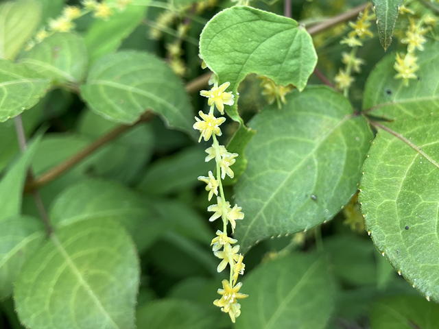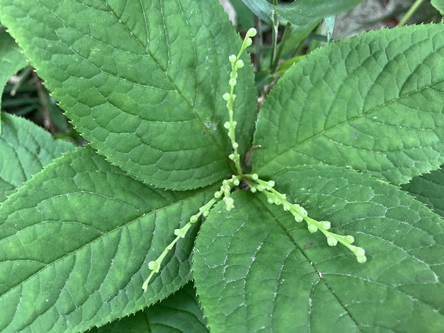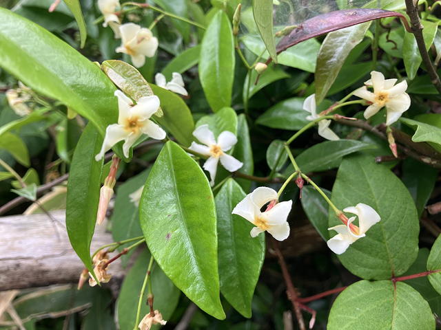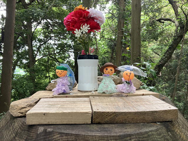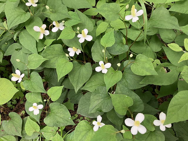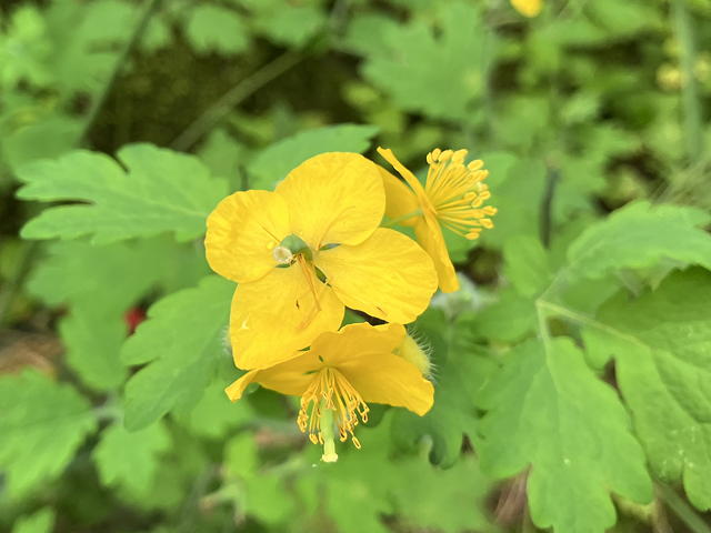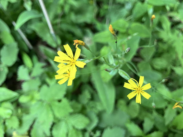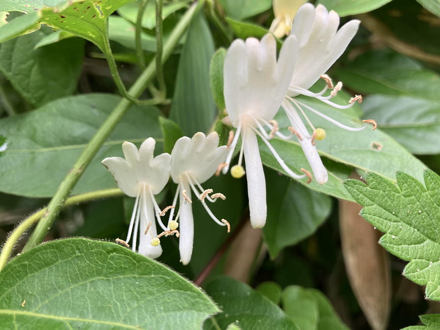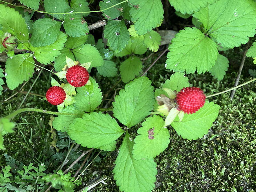 - ^花の名前は次のとおり(ジム友キョウコさん調べ)。オオトキワツユクサ or ミドリハカタカラクサ / ヒメフウロ / ドクダミ / ハルジオン / クサノオウ / ヘビイチゴ / ヤマアジサイ / スイカズラ / ノアザミ / ニガナ / テイカカズラ / ツタウルシ雌花? / ナワシロイチゴ / コナスビ / ウリノキ / オカタツナミソウ / サイハイラン / フタリシズカ / ユキノシタ / オオバギボウシ / おまけ