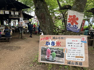 小仏城山も大賑わい。名物メガ盛り(城山盛り)のかき氷に心を引かれましたが、ここは我慢して足を止めることなく先に進みます。