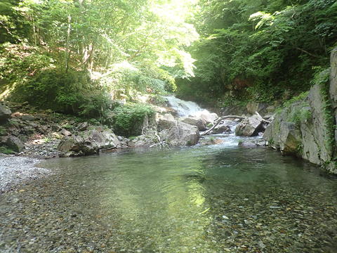 概要:栗原川林道のゲートを出発し、栗原川に入渓。遡行の後、大膳ノ滝の手前から右岸に上がって円覚址(林業集落跡)を通り不動沢に再入渓し、適宜の場所で幕営。翌日、尾根を越えてツバメ沢に入渓し、これを詰めていったん栗原川林道に上がり、短時間の歩行の後にケヤキ沢に下り、栗原川まで下降を続けて起点に戻る。