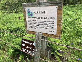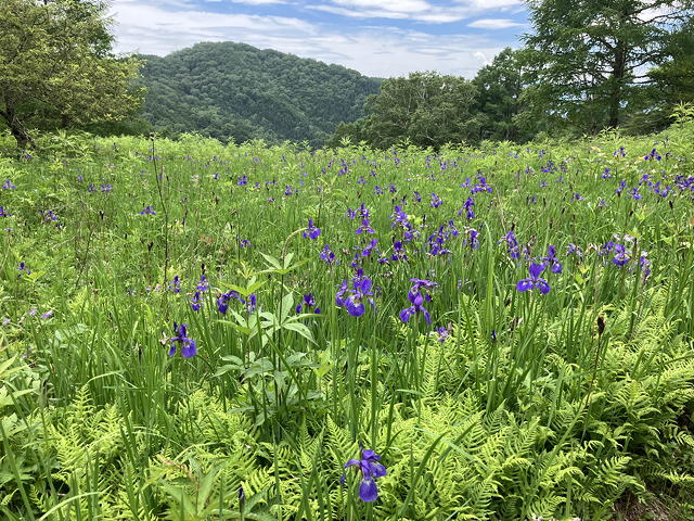 その地名のとおりここはアヤメの群落で有名だったものの、シカの食害により一時アヤメが激減しましたが、その後の保護活動を通じて植生が回復しつつあるのだそうです。とは言え期待していた「見渡す限りのアヤメ畑」というのとは大違いで、ちょっと拍子抜けでした。