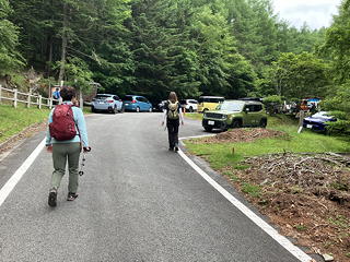 この山の売り物であるアヤメの時期とあって登山口近くの駐車場は満車でしたが、少し戻ったところにある分かれ道に車を駐めることができ、身繕いをして出発です。