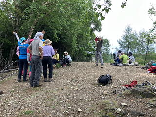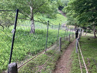 さらに緩やかに歩いて着いたのは裸山で、ここにはアヤメ平よりも見事だというアヤメ群落がありました。もっとも登山道と群落とがネットで厳重に遮断されてしまっているのは興醒めと言えば興醒めなのですが、シカの食害からアヤメを守るためには仕方ありませんし、もしかするとシカ以上に人間から花々を守るためにもこの措置は必要なのかもしれません。ともあれ、このネットに沿って時計回りに回って登り着いた裸山のてっぺんでは大勢のハイカーが寛いでおり、何かをバックにして記念撮影に興じているグループもいました。
