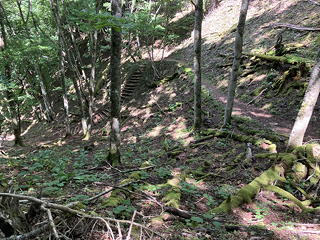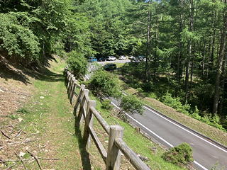 アヤメ平を通り抜けたら、櫛形山の西斜面を横断して起点へ戻ります。ところが等高線に沿った平坦な道が続くだけかと思いきや、思わぬ「急坂」もあってちょっとムッとしてしまいました。いや、これも予習不足だった自分が悪いのですが。