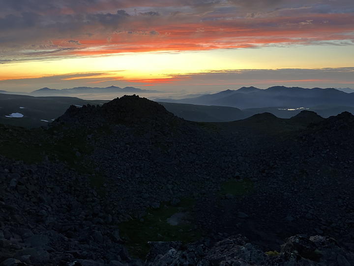 トムラウシ山頂から見た沼ノ原と石狩岳