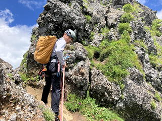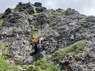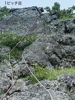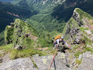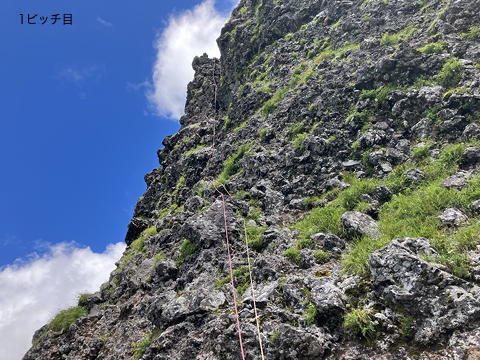 続く2ピッチ目はなんということもない草付きリッジの歩きです。