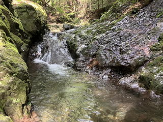ということなので、ここで遡行を終了することにしました。ここまでの所要時間は、入渓点から途中の木橋までが50分、そこからこの滝の上までがちょうど1時間です。