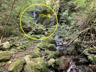 それでも、やがて左から入る枝沢の奥に10m滝が見えたらゴールは間近です。