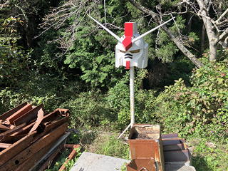 尾根上の開けた場所には小さな岩峰があり、その向こうに役目を終えて裸になった送電鉄塔が立っていました。冠岩沢の下りでも同じようなものを見ましたが、こちらの方が孤高感を漂わせていて心惹かれるものがあります。手前のススキをかきわけて近づき、比較的しっかりした岩登りをこなして鉄塔の足元を通過したら、今度こそその先は下り一方になってくれました。