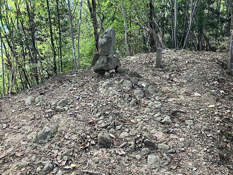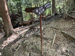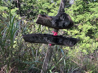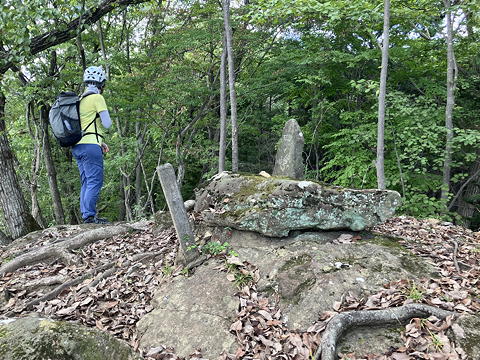 五ノ峰(ここだけ石碑の表示が「峰」ではなく「峯」になっています)はなんの変哲もない林間の小広場になっていて、ここで水分補給のために小休止をとりました。「三ノ峰」騒動は骨折り損のくたびれ儲けになってしまいましたが、とにかくこれで五峰コンプリートです。