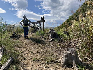 文殊峠の周辺は植林が伐採されて気持ちよく開け、武甲山の姿を見通すことができました。ここで行動食のイチジクを食べ終えたらあとは下山するだけで、登山開始時点には1リットルあったスポーツドリンクはこの時点ではほとんどなくなっていますが、節約しながら歩けばどうにかなることでしょう。