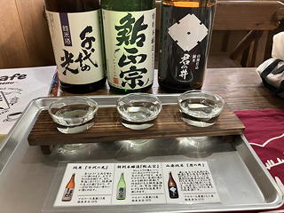 ヒュッテに戻ったらようやく乾杯!お互い持参したアテをシェアしながら軽く口を湿し、ついで私は日本酒の飲み比べセットにも手を出しました。いずれも個性があっておいしい日本酒にいい気持ちになってからカレーとハヤシライスの夕食をいただきましたが、ここでちょっと失敗。この日の夕食は2回制で我々は1回目だったのですが、1回目に与えられた時間は30分しかありません。したがってたくさん食べたい場合は最初は少なめにご飯を盛って早々に食べ切り、ただちにおかわりをするのがコツだったのに、出遅れた私は1回目の制限時間終了間際におかわりをしようとして「もうありません」と言われてしまいました。うむー、この経験はなんとしても次に活かさなければ。
