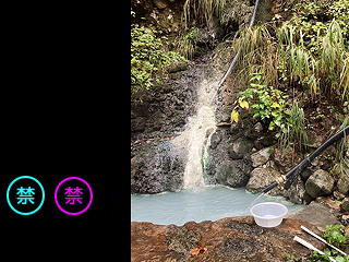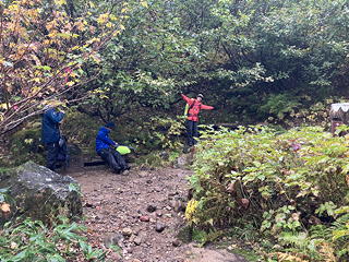 山行のゴールとなる燕温泉の手前では、先ほど渡渉した大倉谷に南から合わさる北地獄谷を少し遡ったところに野湯である「河原の湯」があって、温泉フリークでもあるトモミさんのたっての望みでそちらに足を向けたのですが、やはりと言うかあいにくと言うかカップルが入浴中で、我々はそのお邪魔をしてしまうことになりました。スミマセン。