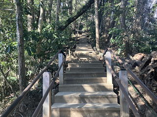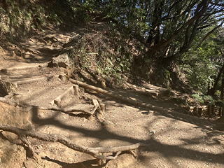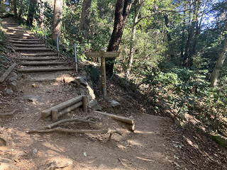 6号路の上の方には、プチ沢登りの要領で流水に気を遣いながら登るところや怒涛の木製階段やらがあって楽しくもあり辛くもあり。とにかくこの日は徹頭徹尾「息が上がらず、汗をかかないペース」を心掛けて歩いていきます。