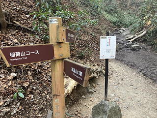 見るべきものを見れば下山あるのみ。ここから1号路を下れば2号路に入るところまでの未踏区間を塗りつぶすことができるのですが、上述のとおり今日は最初から稲荷山コースを下るつもりだったので、この未踏区間は宿題として残ることになりました。
