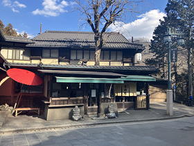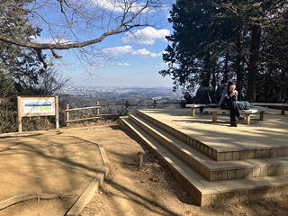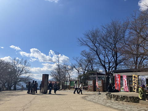 やっと到着した(しかし実質的には2回目の)高尾山山頂は、平日とあってがらんとしています。「おでん」「なめこ汁」といった幟には心惹かれるものがありましたが、ここから1時間も下れば下界でランチの予定なので、ここは我慢です。