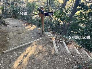 例によって1号路から上がり、最初に2号路が横断するところで2号路の南区間に入りました。今日は前回にも増して気温が高く、うっかりペースを上げると汗をかいてしまいそうです。