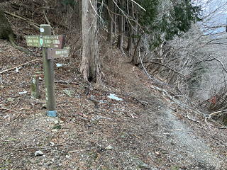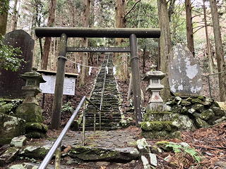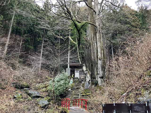 奥ノ院の名物である「天然記念物 縁結びの桂」はすっかり葉を落としており、これがあの青々としていた桂の木と同じものとは思えないほど寒々しい風情です。これには些かがっかりしながら奥ノ院にも参拝し、その裏手の山道を登り始めました。