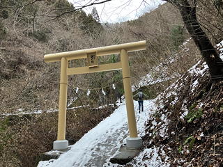 本殿の奥から奥ノ院に通じる参道に進むと、道の上には数日前に降った雪が残っていて滑りやすく、慎重に足を運ばなければなりません。それでも幸い雪が凍結しておらず柔らかいままで、おかげでさほど時間をかけずに奥ノ院に達することができました。