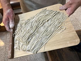 この日は天気が悪いためお店は貸切状態になっており、それをいいことに我々は「山下屋」のご主人とあれこれ会話したり、蕎麦をその場で打ってもらったりしながら2時間半も寛いでしまいました。