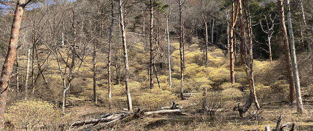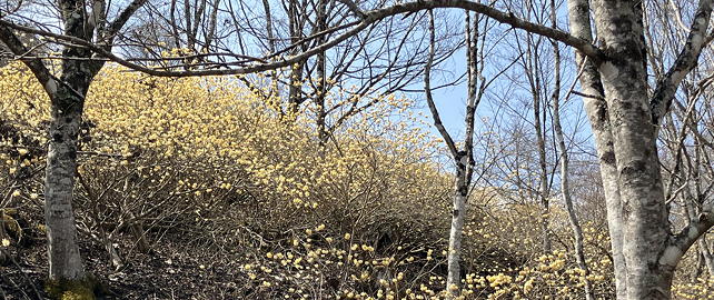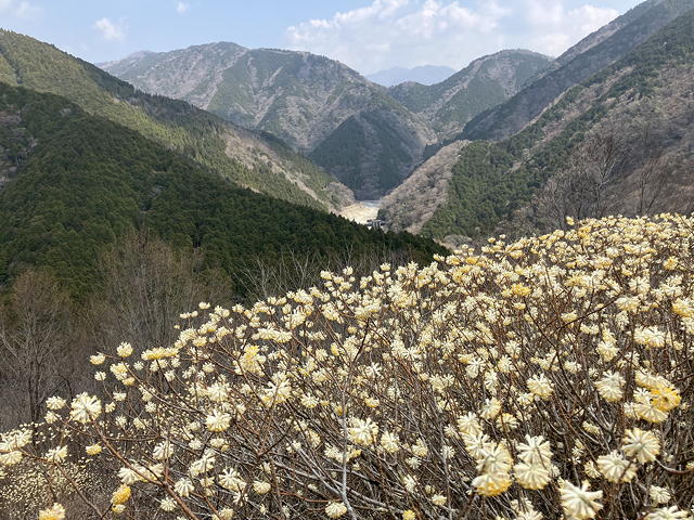 しばしの登りで現れたミツマタ群落はなかなかの見応え。エルドラドには何度か来ていますが、今回は過去のどのタイミングと比べても遜色ない咲き具合です。